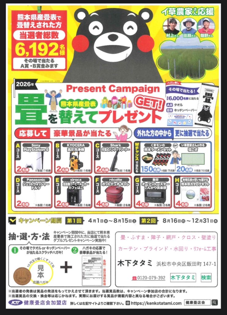 木下タタミでは、今年も大好評の 「熊本県産畳 表替えキャンペーン」 を実施しています。